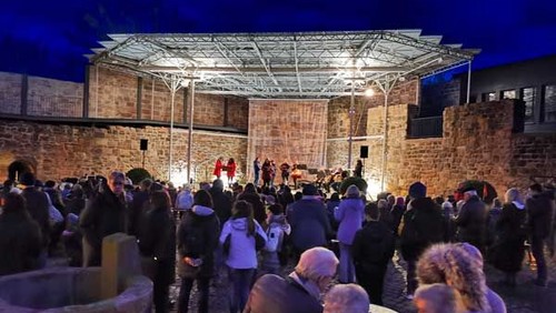 Musik zum Advent mit dem Kinderchor der Auferstehungsgemeinde und dem Posaunenchor der Frankfurter Trinitatisgemeinde - mit Fackelschein, Glühwein und heißem Orangensaft.