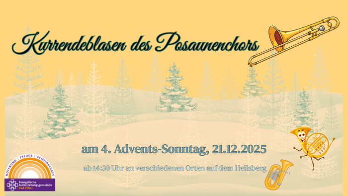 Zum diesjährigen Kurrendeblasen lädt der Posaunenchor der Evangelischen Auferstehungsgemeinde Bad Vilbel herzlich ein.